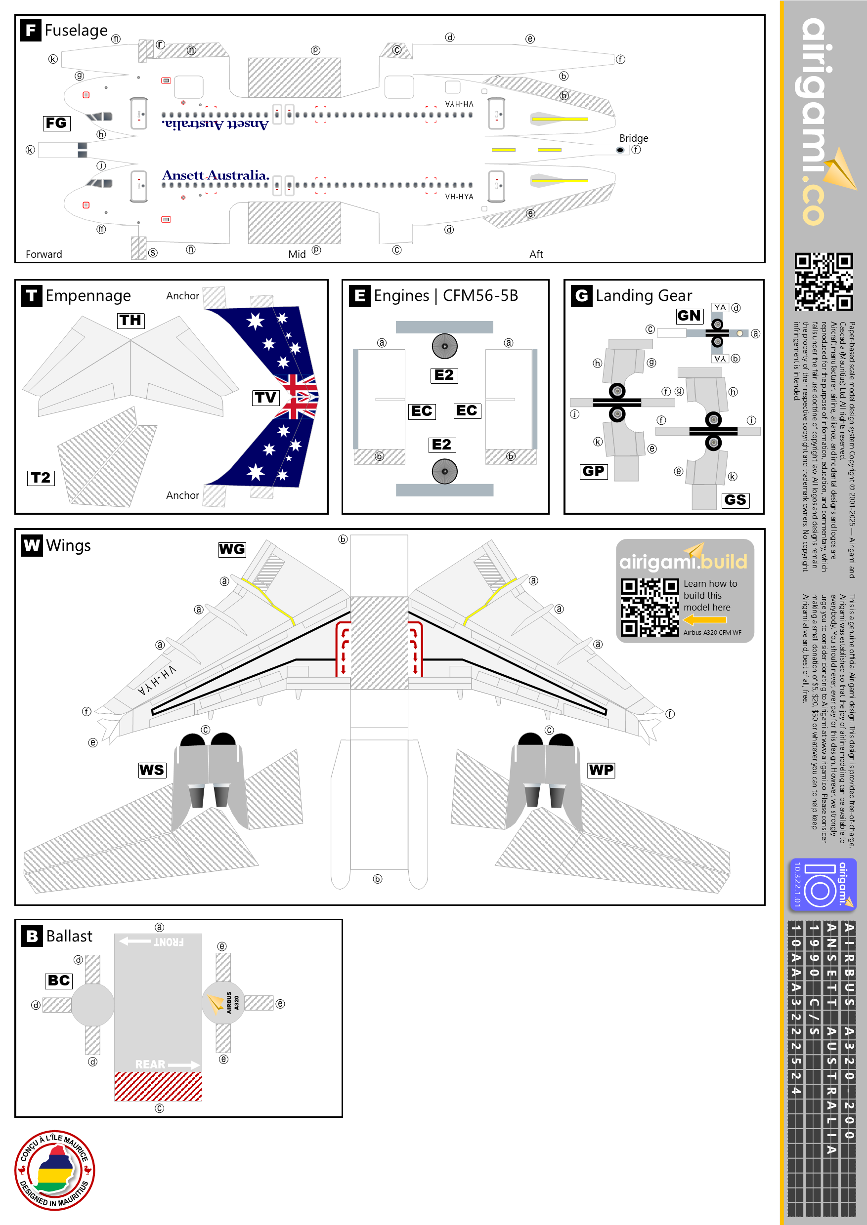 | Ansett Australia Airbus A320-200 1990 c/s Airigami.10: 10AAA3222524 |