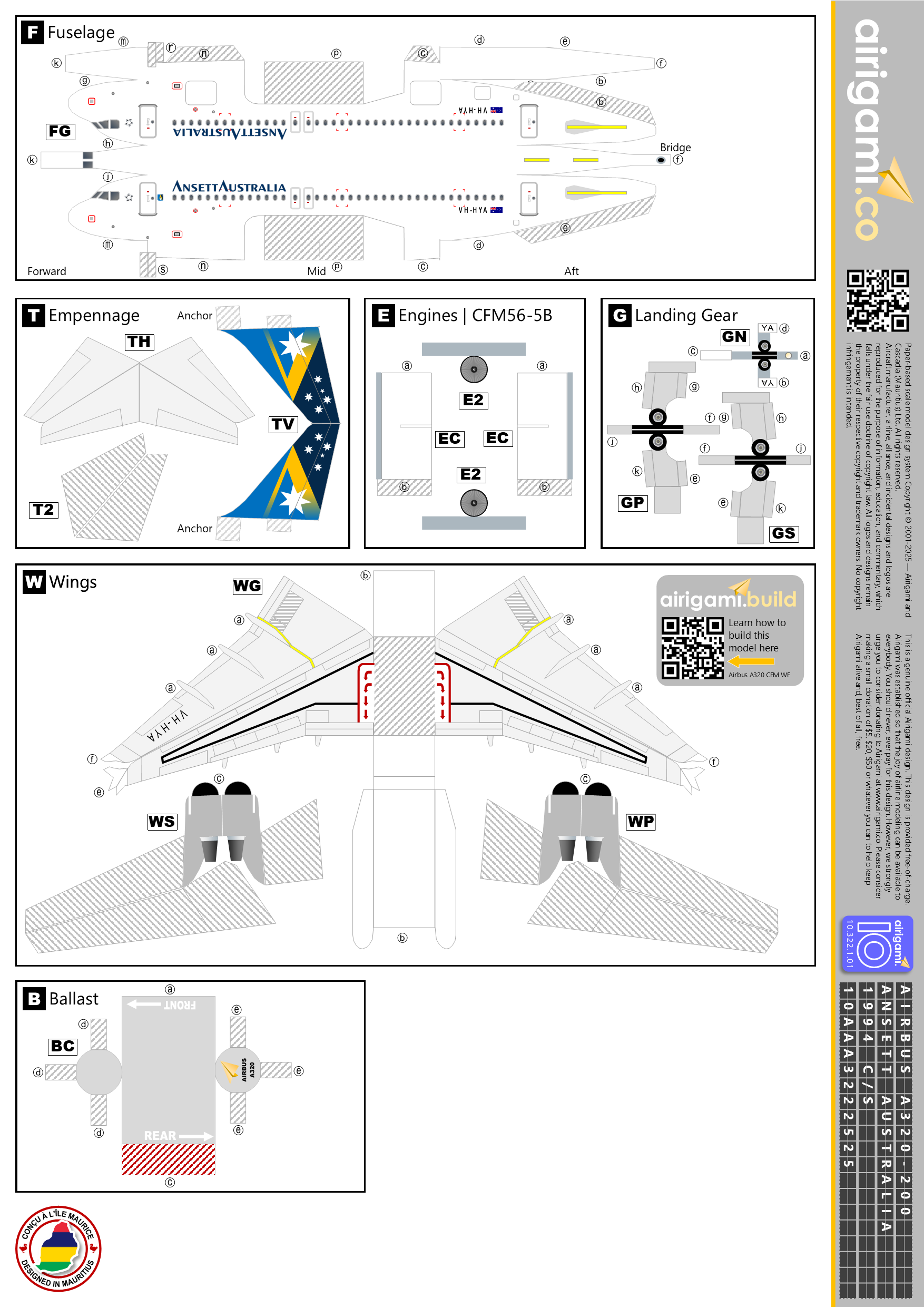 | Ansett Australia Airbus A320-200 1994 c/s Airigami.10: 10AAA3222525 |
