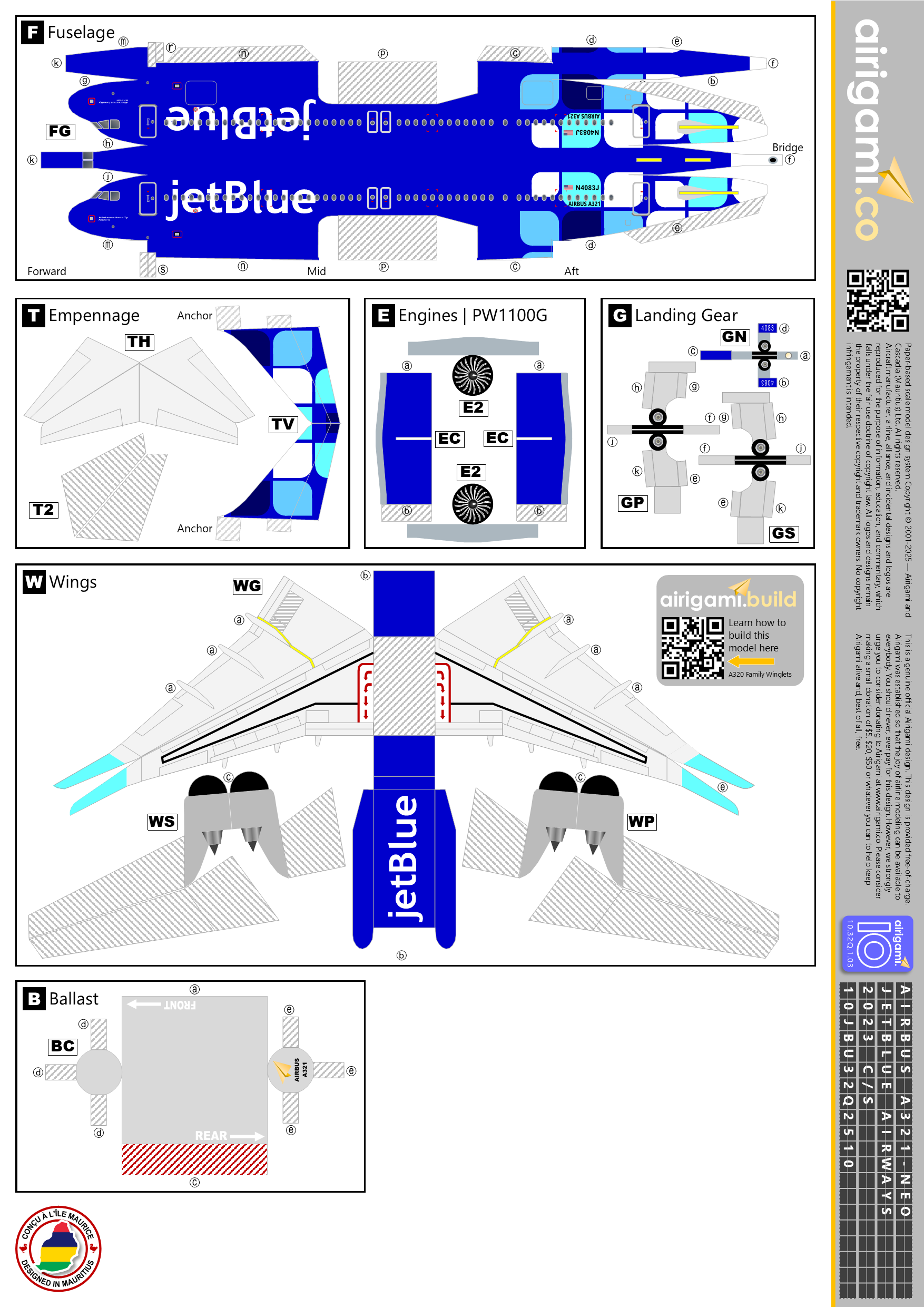 | JetBlue Airways Airbus A321-NEO 2023 c/s Airigami.10: 10JBU32Q2510 |